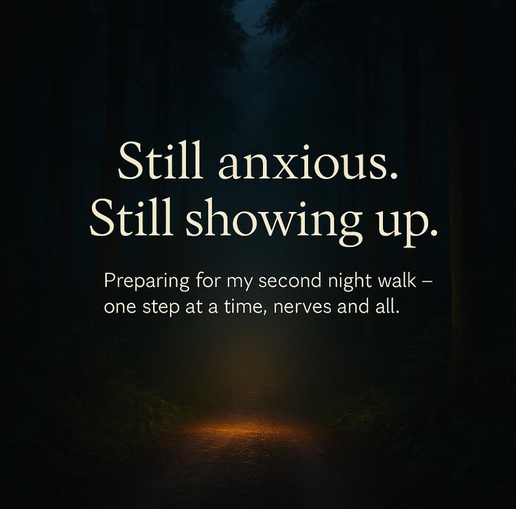 So what changed? Well not Barry,( my anxiety). He is still very much along for the ride, thank you. But something inside me softened — maybe shifted — and I’ve started to see these walks not as battles to survive, but as steps in my recovery. Literal steps. On trails. At night. With strangers-turned-friends who carry extra snacks and light the path when mine flickers.